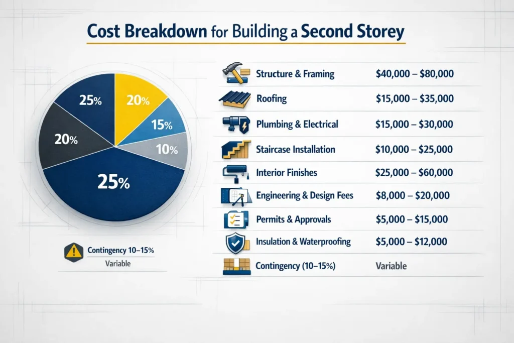 Now, let’s talk about numbers. In Australia, adding a second story to your house usually costs between: